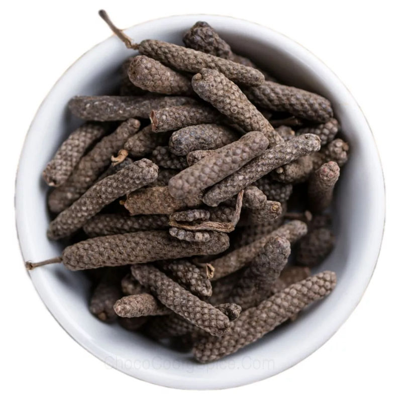 Long Pepper is an ancient spice resembling a slender catkin, made up of tiny fruits clustered on a flower spike. Native to India and Southeast Asia, it has a more complex flavor than black pepper, combining heat with subtle sweetness. Valued in Ayurveda and traditional cuisines, it is both a culinary and medicinal treasure.